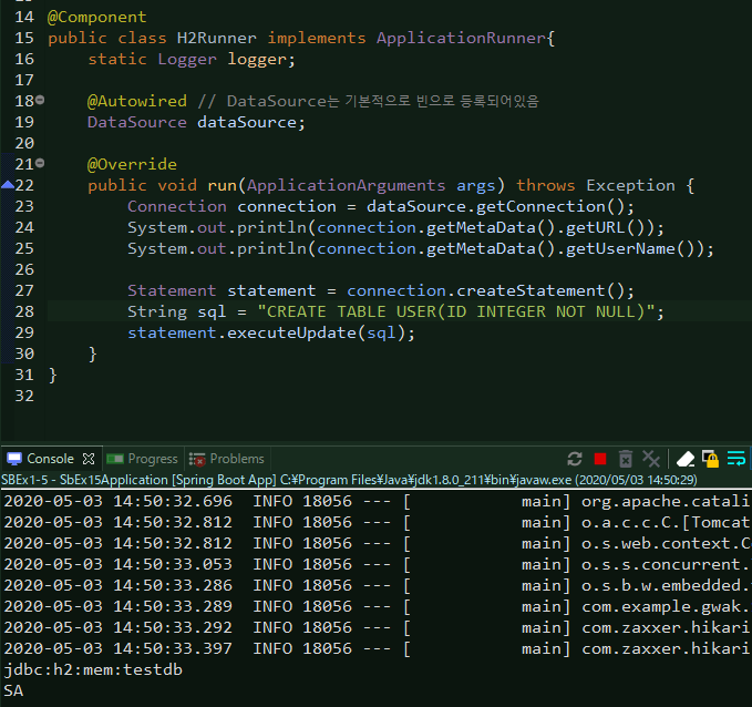 Spring-JDBC가 classpath 에 있으면 자동 설정이 필요한 빈을 설정 해줍니다.