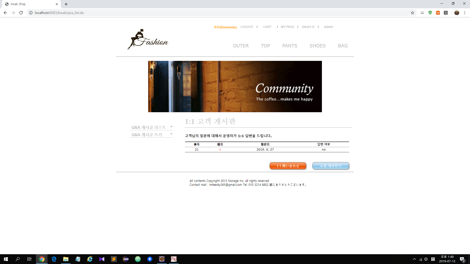 ショッピングモール構築を企画·制作することで基礎的なDB設計からSpring Frameworkに対する理解