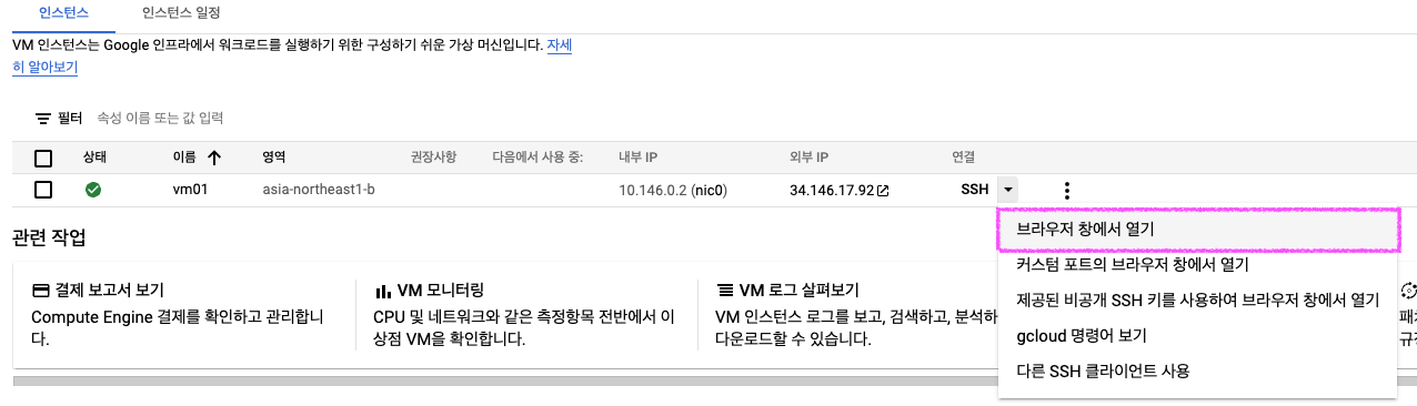 Google Compute Engine 원격 연결 및 웹 서버 생성
