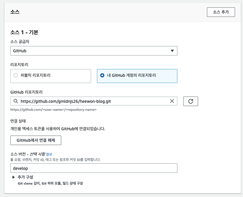 - 소스공급자는 Github로 선택